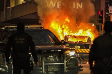 Six Arrested After Protesters Attack Businesses Set Police Car On Fire In Atlanta Washington Examiner